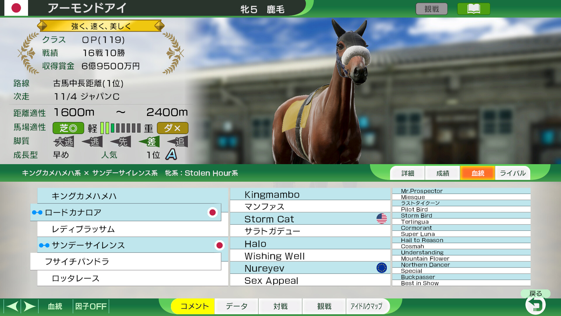 ・名馬の生年は「システム設定①」で「史実馬の誕生年」を「史実」にしてゲームを始めたときのものです