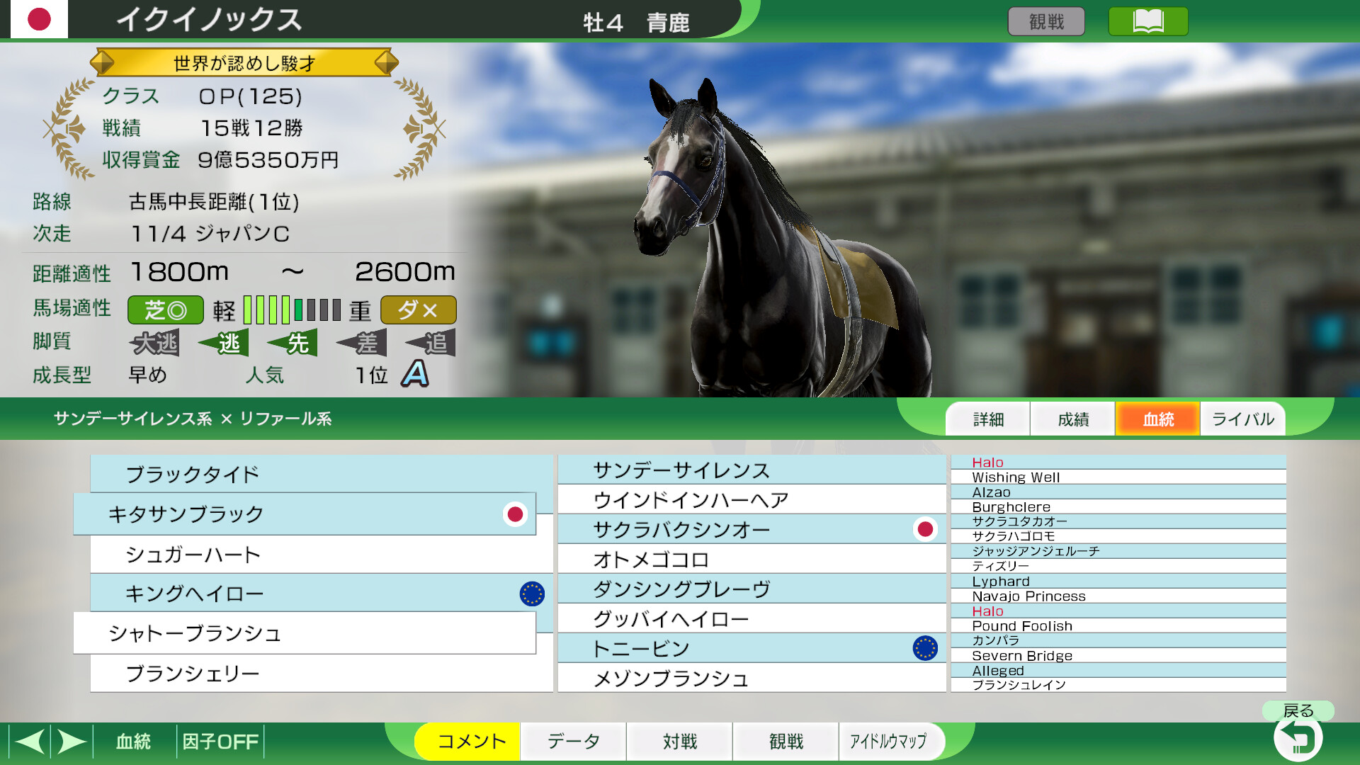・名馬の生年は「システム設定①」で「史実馬の誕生年」を「史実」にしてゲームを始めたときのものです