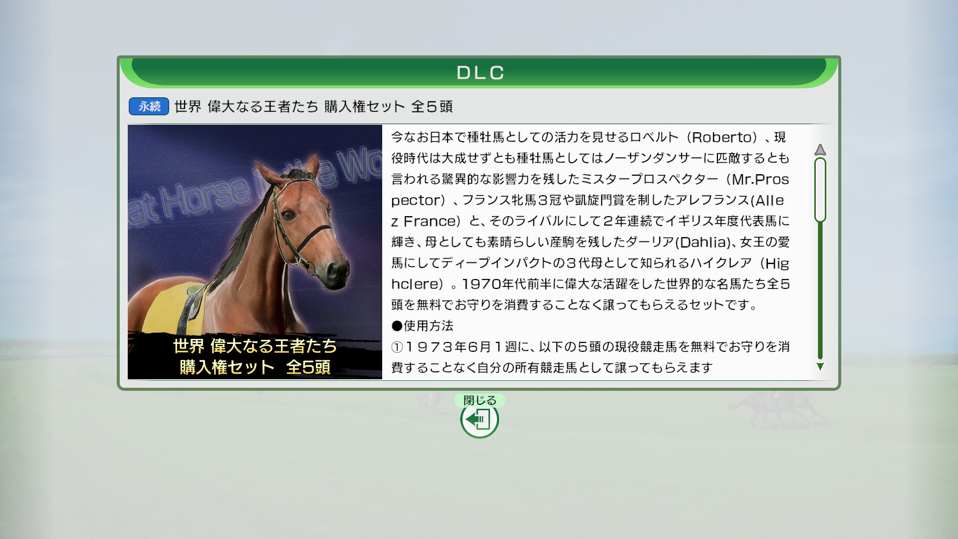 ・これらの名馬は、このDLCの適用によってのみゲーム内で入手できます