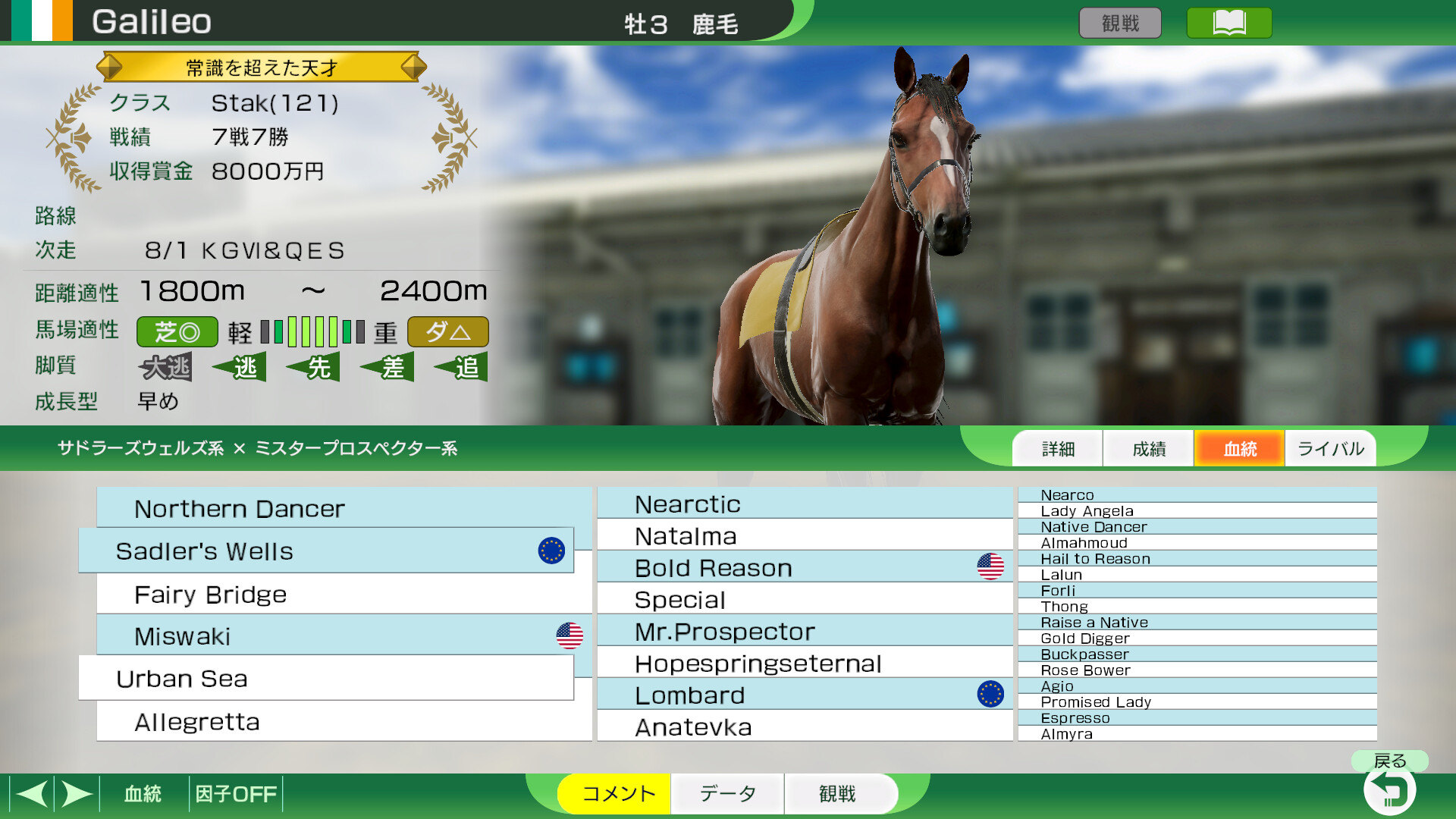 ・名馬の生年は「システム設定①」で「史実馬の誕生年」を「史実」にしてゲームを始めたときのものです