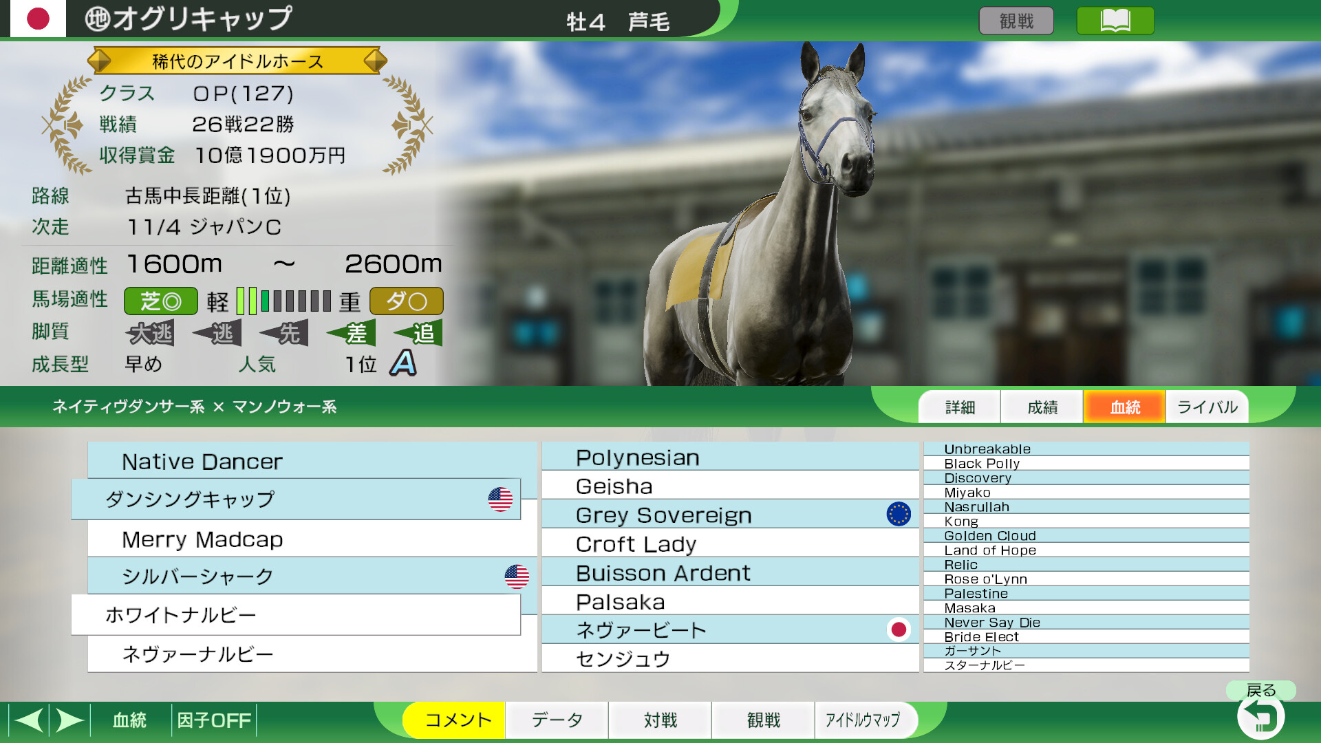 ・名馬の生年は「システム設定①」で「史実馬の誕生年」を「史実」にしてゲーム開始したときのものです