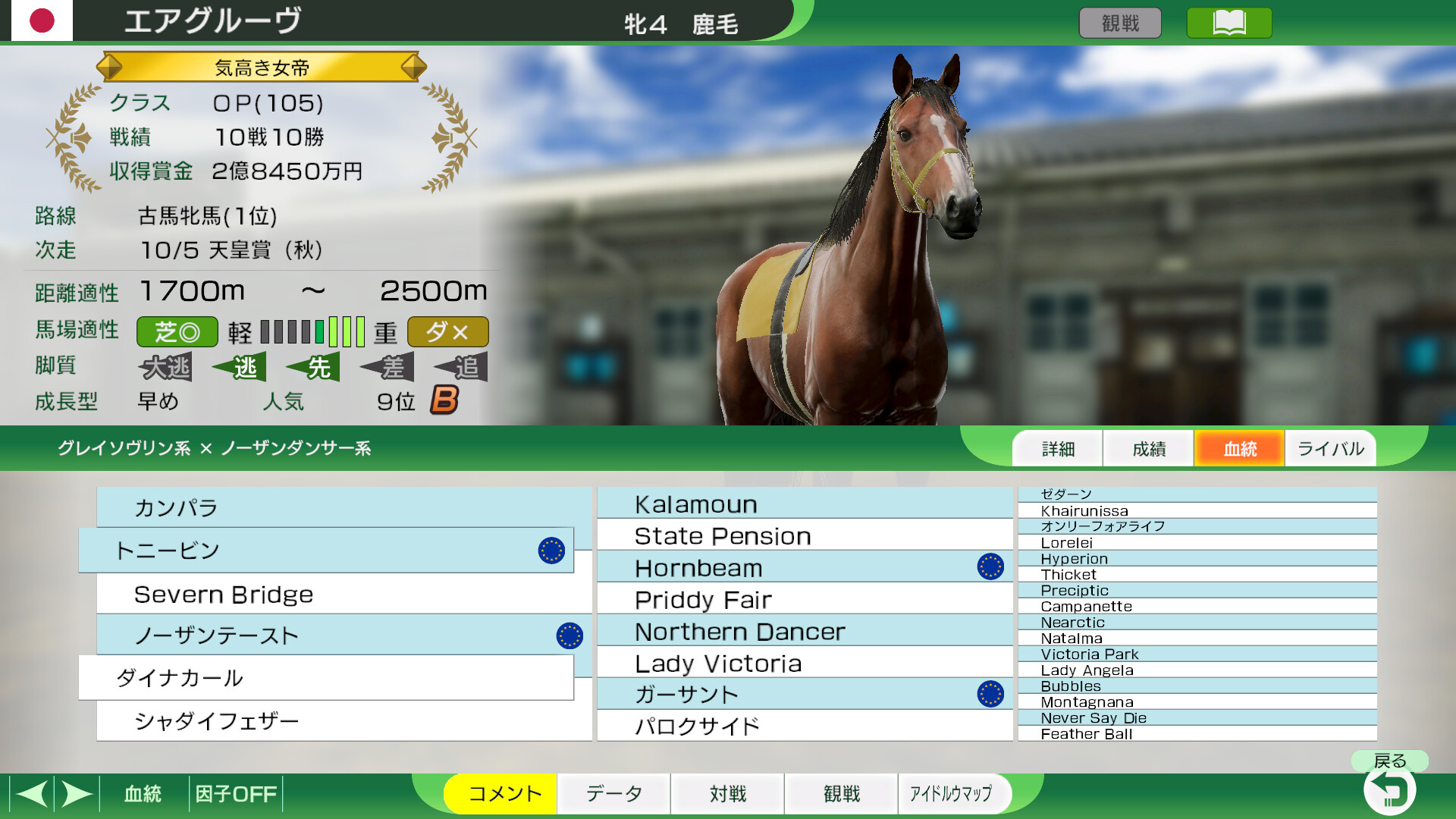 ・名馬の生年は「システム設定①」で「史実馬の誕生年」を「史実」にしてゲームを始めたときのものです
