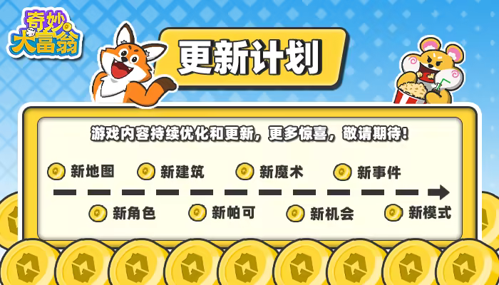 ​"Wonderful Richman" is an online multiplayer board game with elements of strategy and leisure. Players take turns rolling dice to move, purchase properties, upgrade buildings, use magic cards, utilize Paco's enhancements, and leverage the three unique skills of their animals to earn money, accumulate assets, and ultimately defeat their opponents.​