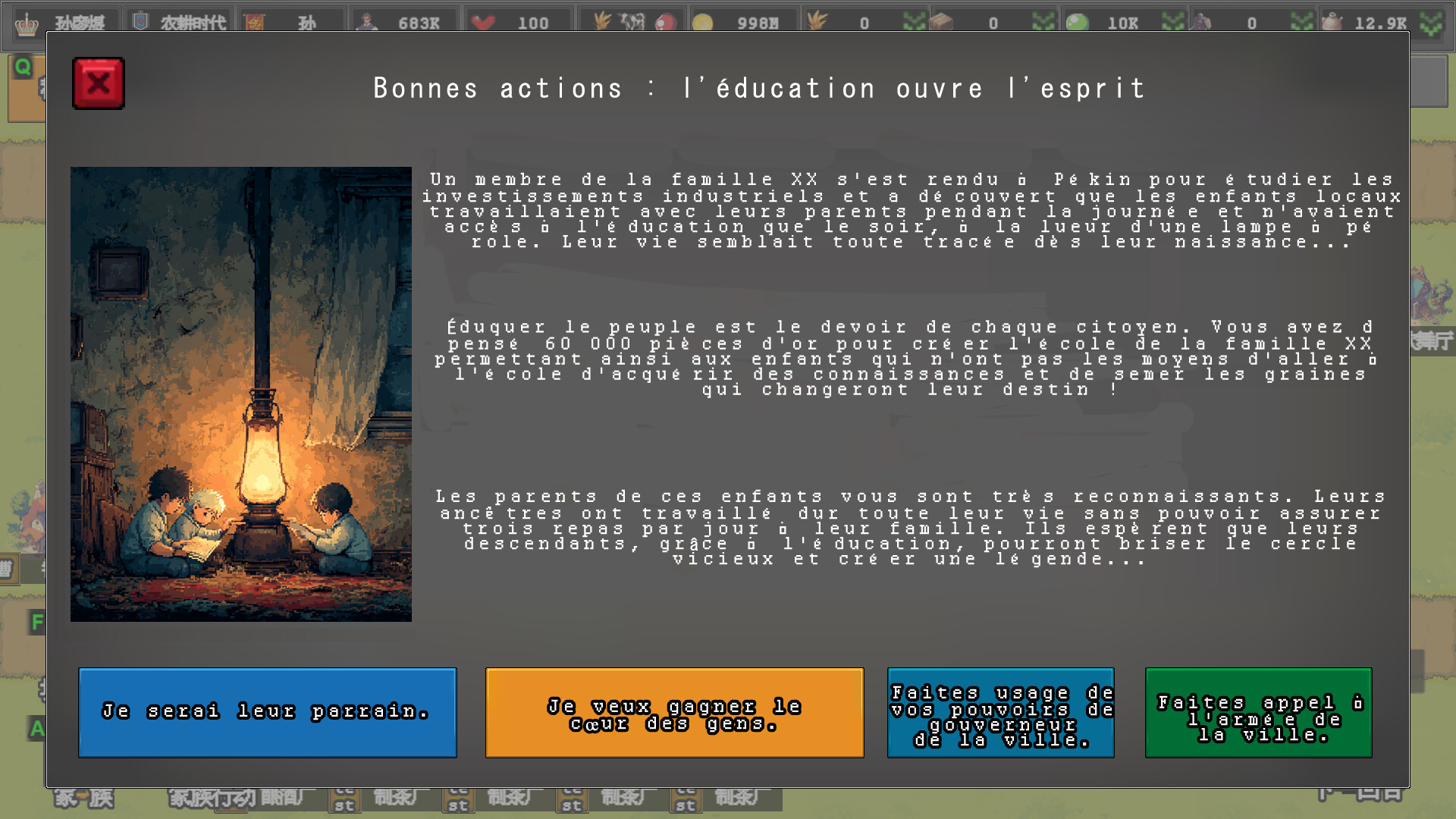 3. Afin de bien gouverner la ville, vous serez également confronté à de nombreux problèmes, tels que : pénurie de marchandises, hausse des prix, plaintes des habitants, conflits liés à l'application de la loi, révolte des habitants, augmentation du chômage, troubles de l'ordre public, propagation de rumeurs, immigration des habitants, demandes d'aide des voisins, catastrophes naturelles et accidents, secours d'urgence, etc.