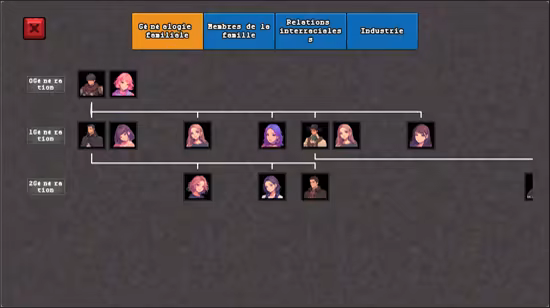 « Family: Rise » est un jeu de simulation stratégique au style pixelisé. Vous commencez avec une famille composée d'une seule personne, puis vous élevez vos enfants, créez diverses industries pour étendre l'influence de votre famille dans tous les domaines de la ville, prenez des décisions judicieuses dans diverses situations et échangez des avantages avec d'autres familles afin de devenir la famille la plus puissante.