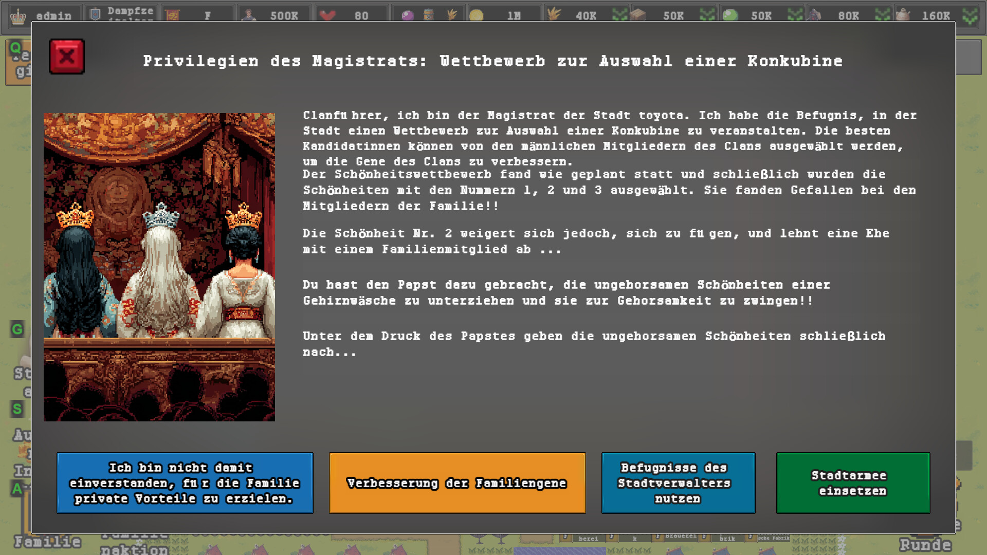 4. Wenn Ihre Familie mächtig genug ist, treten verschiedene Ereignisse im Zusammenhang mit der Verwaltung der Stadt auf;