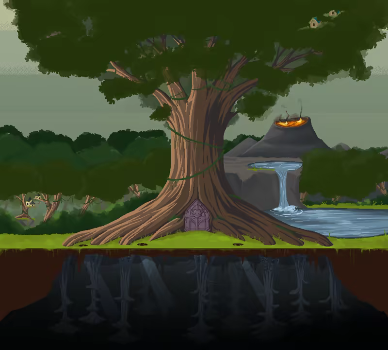 Exploring the jungle of the Mother Tree, venturing from the safety of her home village, she'll see places and meet people she's never seen before. From the heights of the Crown to the depths of the Abyss, and the edge of the Lake to the furnaces of the Flaming Mountain, tame the world and free it.