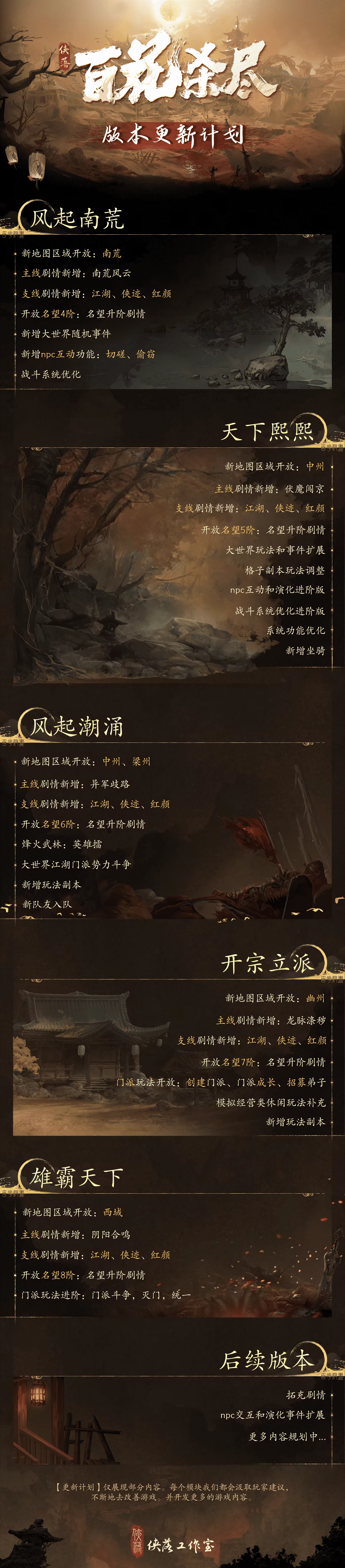 “《侠落:百花杀尽》的抢先体验状态预计会持续12个月左右,但我们并不会订立一个明确的结束时间点,原因是因为我们想给玩家带来更加全面的武侠世界以及更好的游戏体验。后续版本核心目标也将围绕经营类玩法,休闲类玩法以及门派玩法展开。”