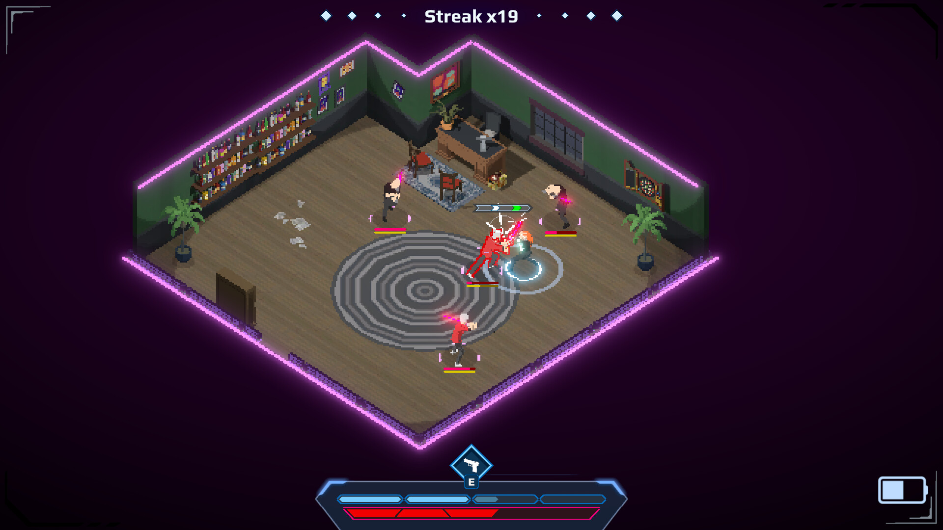 Disco Samurai is a unique rhythm combat game set in the cyberpunk city of Disco. Every action you and your enemies take is synchronized to the beat of the music.