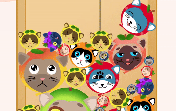 In CatMelon - Suika Game, you'll play with cute cats dressed as fruits! Since these cats love to play inside a cardboard box, your goal will be to drop each cat into the box, trying to match the identical ones. As you match, you evolve to an even bigger one! The bigger the cat, the higher the score!