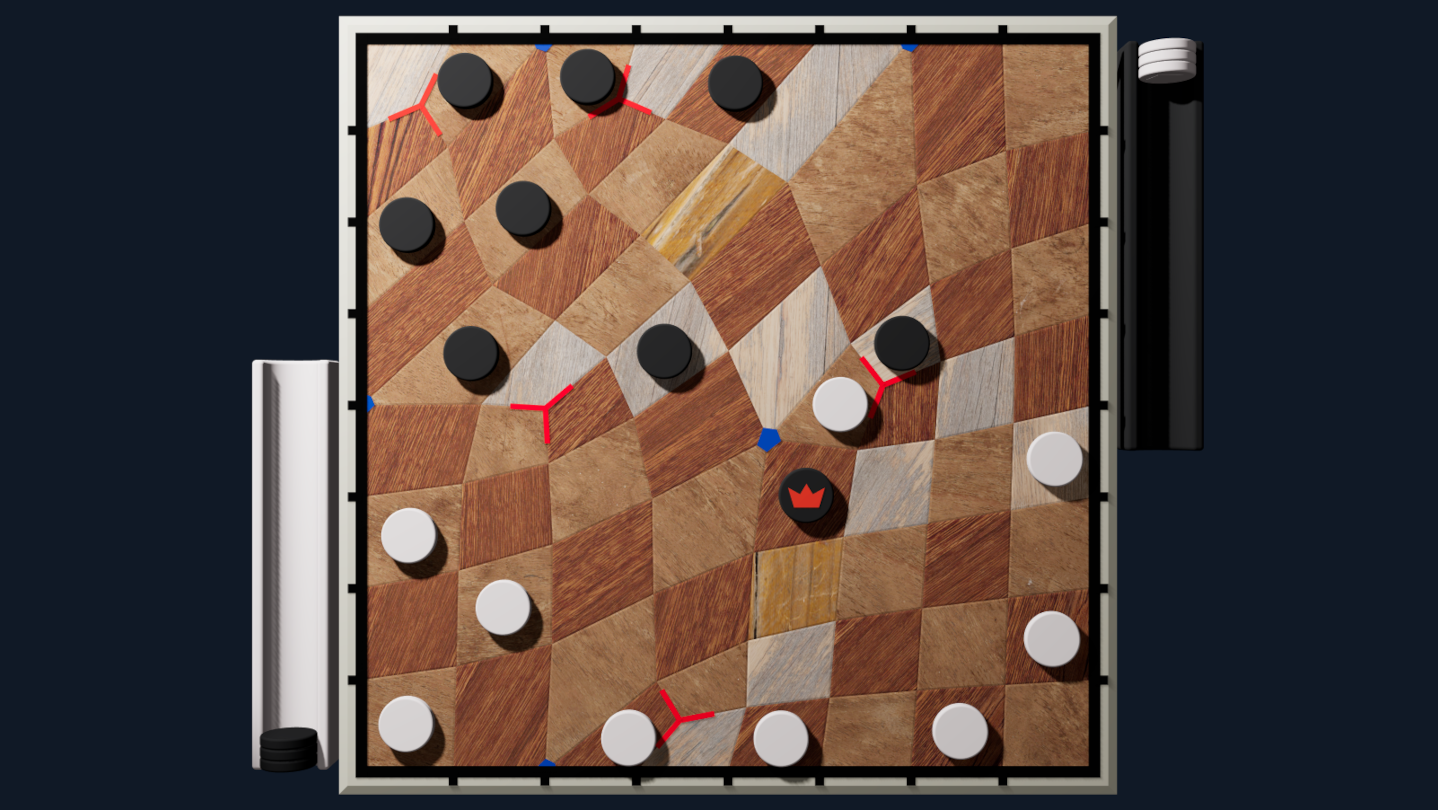 A variant of the classic game Checkers (also called Draughts), where the grid is irregular.