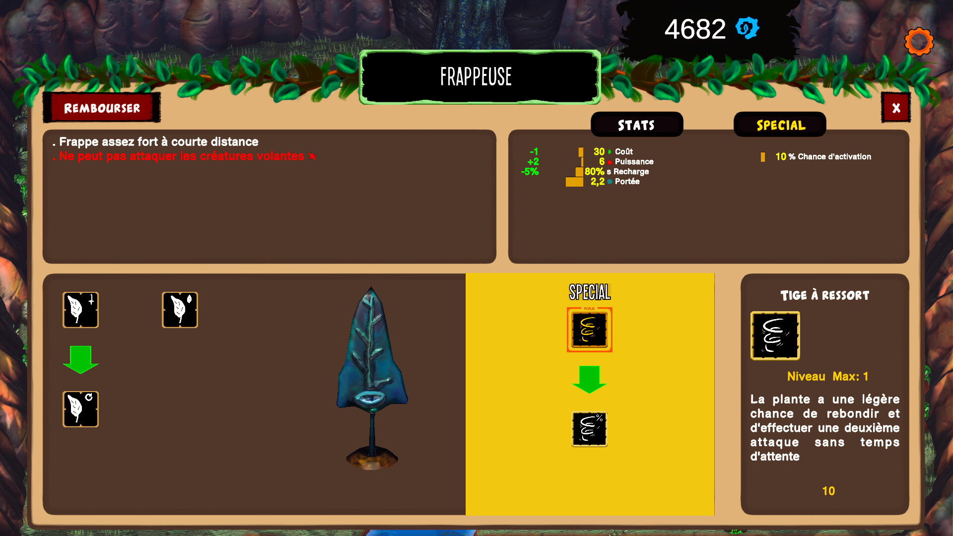 Vous aurez accès à 5 principaux types de plantes, que vous pourrez faire muter ensuite en des versions plus puissantes!
