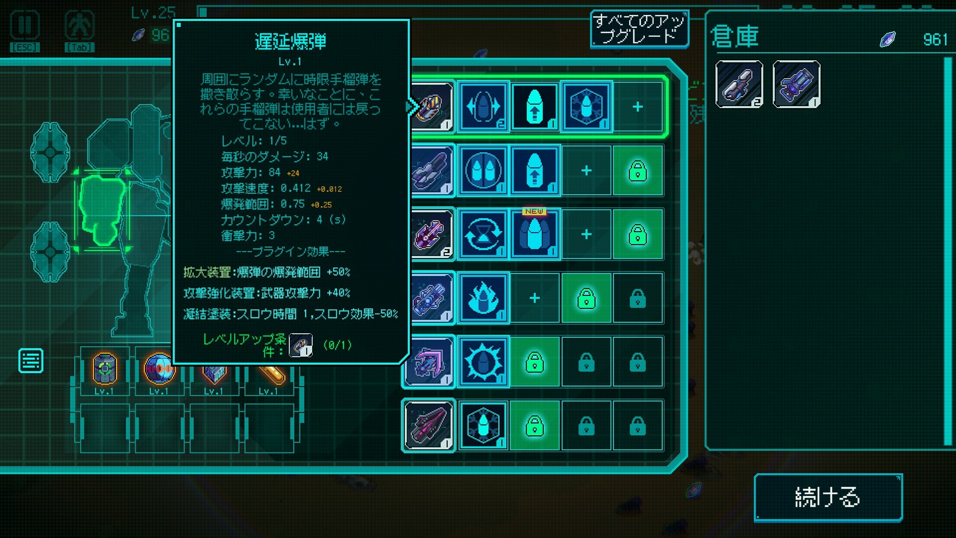 武器庫には10種類以上の武器、15種類以上のプラグインユニット、そして若干の強化アイテムが配備中で、支援部隊が到着次第、さらに多くの新規武器も続々と登場予定です!