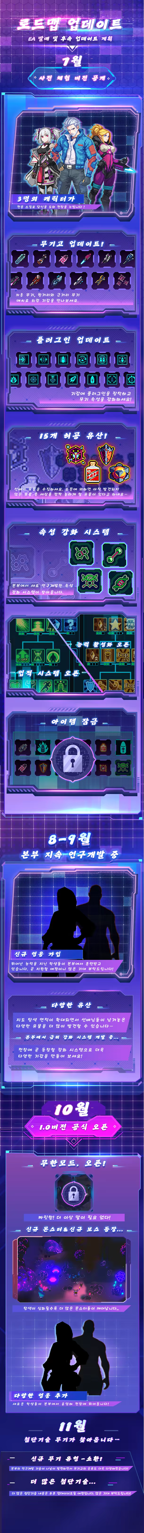 지휘부에서 지시한 탐색, 섬멸, 생존, 방어 등 특정 미션을 완료하세요. 새로운 도전이 여러분을 기다립니다! 전사가 전투 중 누적한 경험치는 메인 기지에서 업적과 강화 속성을 오픈할 수 있습니다. 다가올 다양한 전투에 대비하세요…