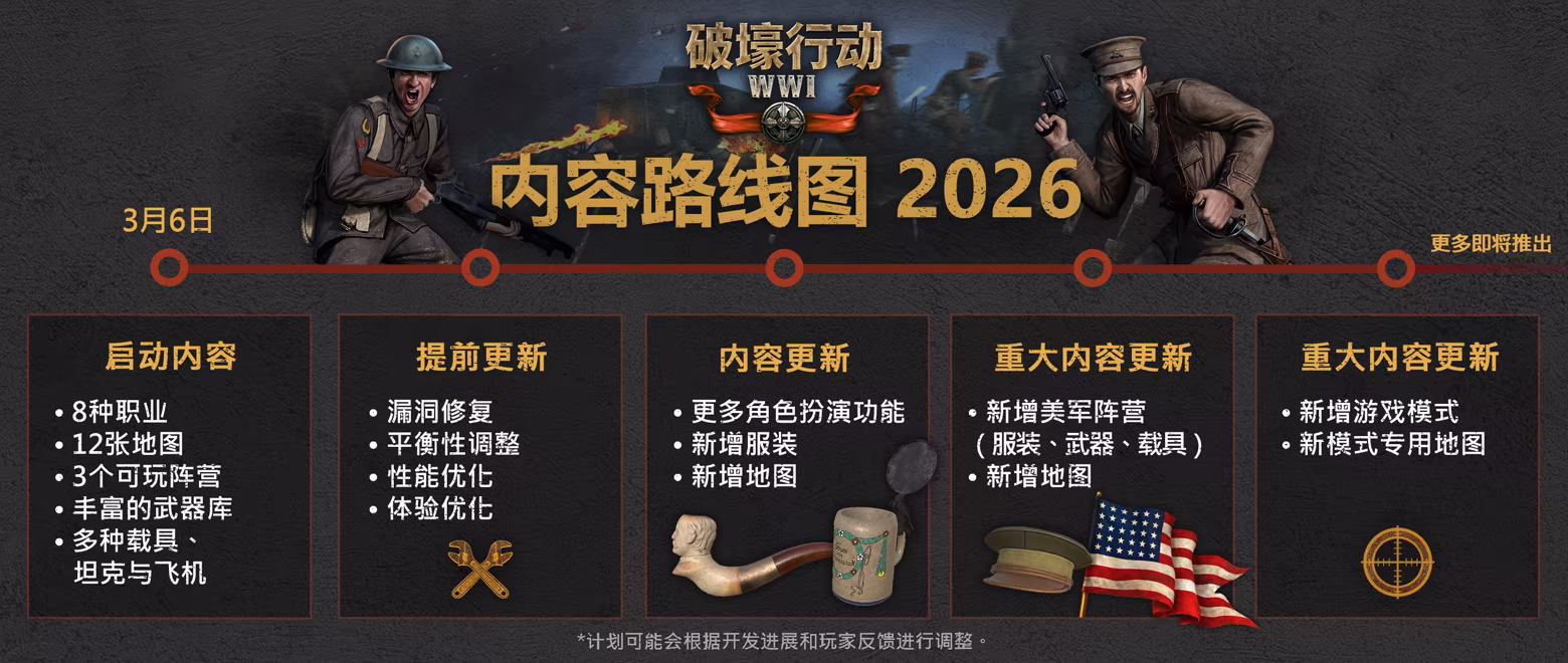 提供火焰噴射器、毒氣、鏟子、炸藥、大砲、飛機、機槍,以及一系列載具與實驗性坦克。裝備各式各樣的歷史武器、駕駛種類繁多的不同載具,還有其他物品,例如可以拿法國長棍麵包痛擊敵人,或是吹奏風笛提振士氣!你曾經駕駛過載有另外 10 名玩家的坦克嗎?在這款遊戲中,你就能辦得到!