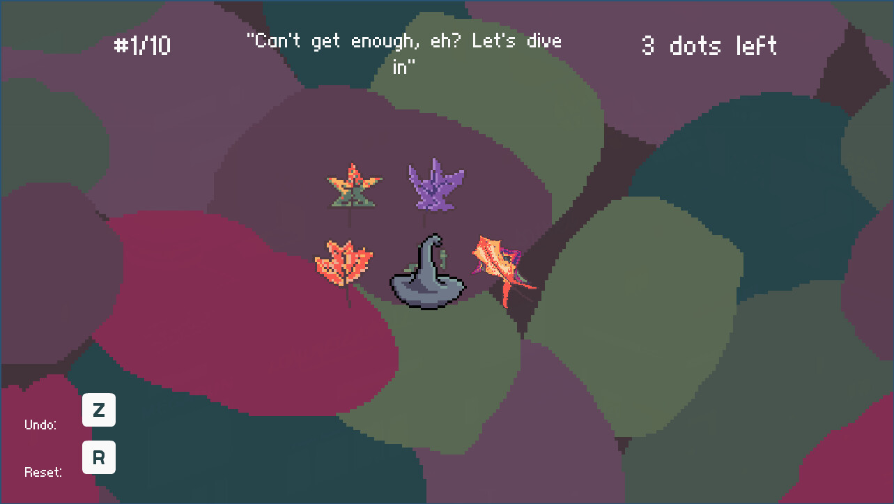 Dot Hop has 72 puzzles and over 1000 dots to be hopped. The puzzles have been created by hand, but a generator is in the works, along with more mechanics and game modes.