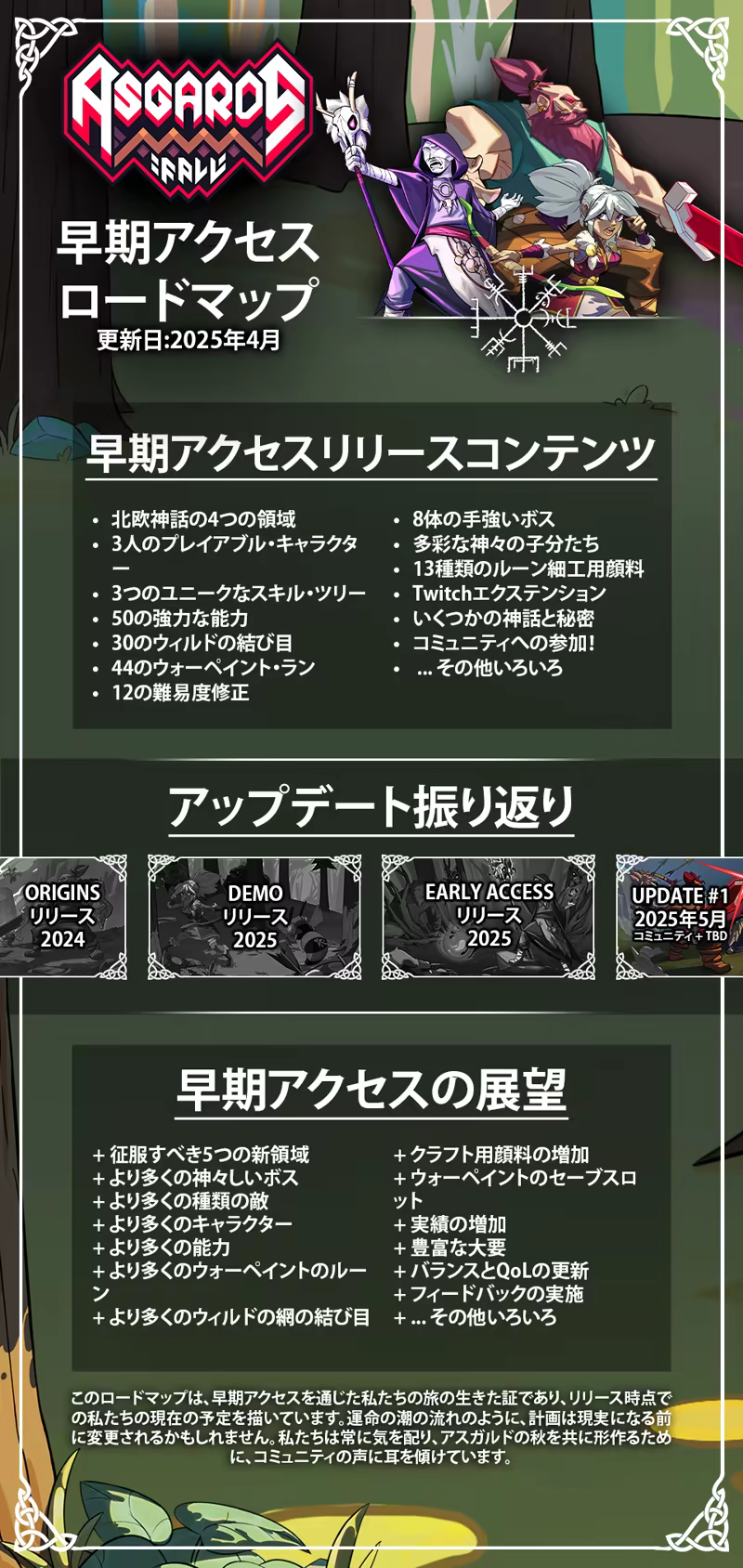 “The Early Access version of Asgard’s Fall will already offer a fully playable experience packed with content. You'll be able to explore multiple worlds, choose from a variety of unique characters, and experiment with a wide range of abilities, synergies, and customization options. The game also features deep progression systems, difficulty modifiers, and even Twitch integration for interactive streaming fun. There’s already plenty to dive into, with even more exciting content planned for the road ahead!”