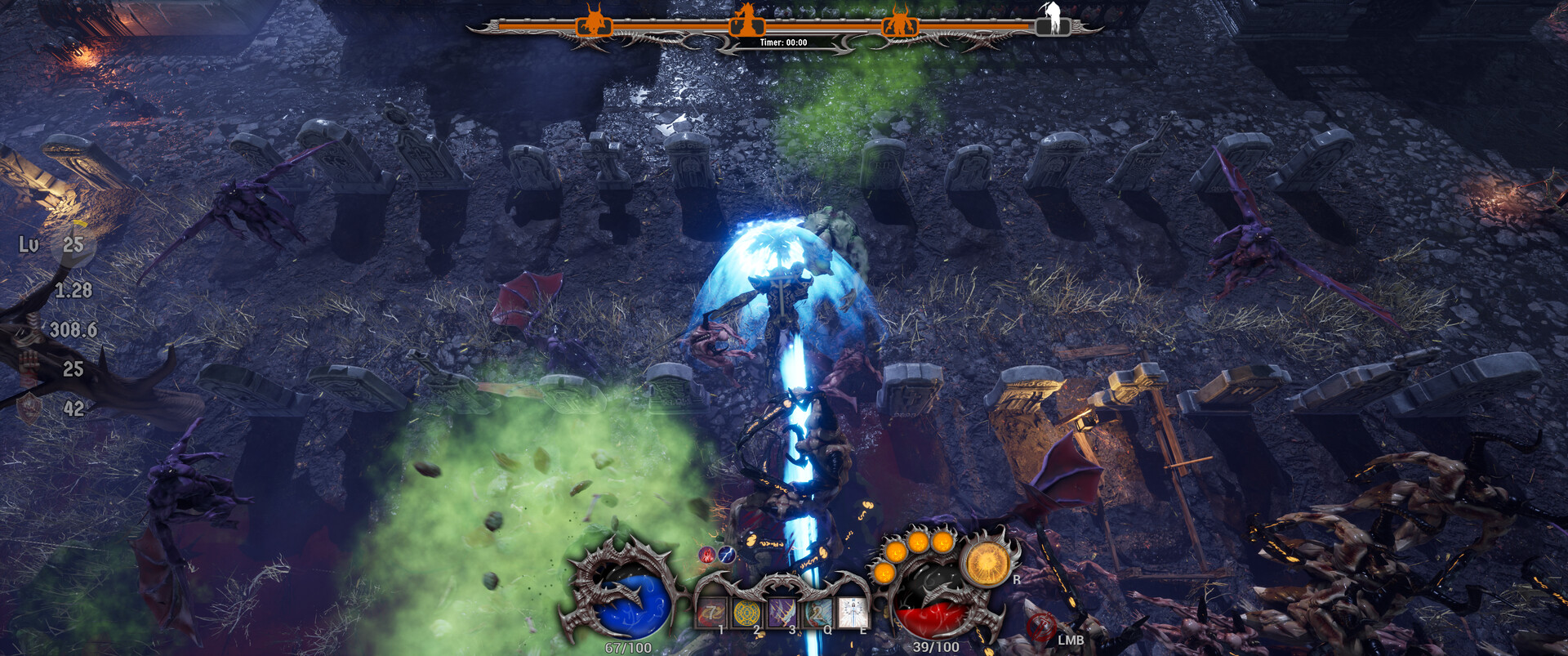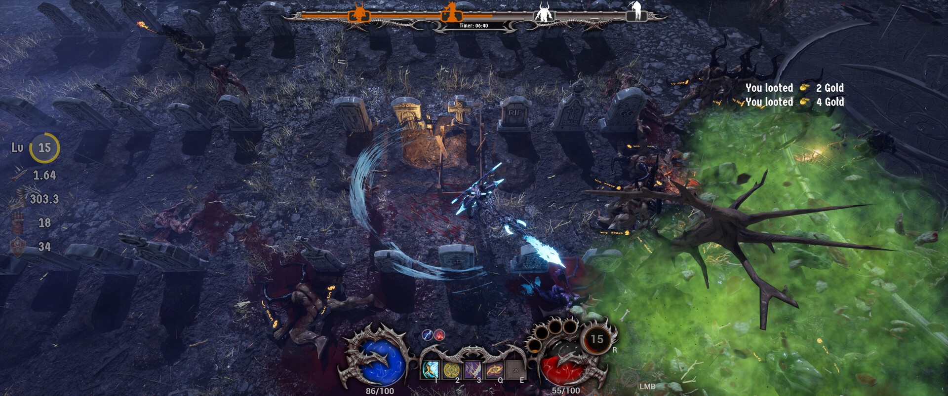 Defeat bosses to collect gold, rare gear, and powerful gems. Slot gems into gear to craft builds and unlock unique perk combinations.