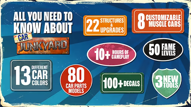 Earn contract points and grow your fame in order to climb your way up until you reach the top spot of car dealing underworld. Keep making progress and unlock new contracts, missions, structures, paint techniques, decals, and decorations to enrich your junkyard with some flashy, neon-like stuff. Pimp your ride and set up your own collection of muscle cars or trade them off at multiple auctions available. Master the art of car dealing and build the renown that will grow beyond your imagination.