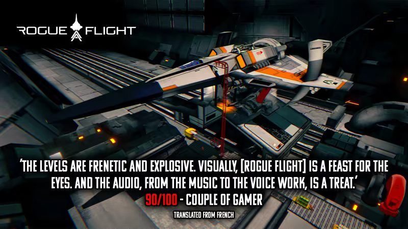 “With excellent art/presentation, exciting breakneck bullet-hell gameplay, an engaging story, and one of the best video game soundtracks I’ve heard in a while, it is impossible for this reviewer not to recommend Rogue Flight. Every aspect was clearly made with love, both for itself and for iconic series of the past, and I can’t imagine anyone trying this game and earnestly saying they didn’t like it.”  10/10 Try Hard Guides