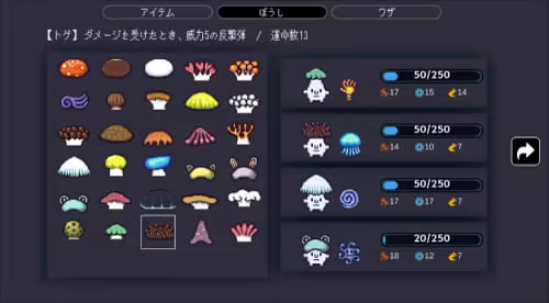 An RPG where a mushroom embarks on an adventure with the help of a witch's powers. This game is filled with activities involving the collection of various items through different means. You gather items by battling formidable enemies, interacting with people, solving puzzles, and overcoming a variety of challenges.