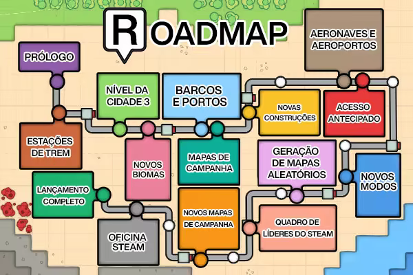 Construa uma rede bem conectada de estradas, trens e portos entre suas Fábricas e Cidades para transportar e atender a qualquer necessidade, mas tenha cuidado para não sobrecarregar sua cadeia de suprimentos.