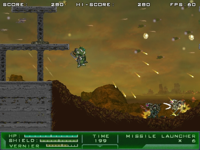 Mankind’s war against the Ramulons has reached the planet Ramulon itself and it is now down to YOU to pilot the ‘GMR-34 SALADIN’ - a Manned Combat Robot - and take on the Ramulon army. Customize your arsenal of explosive, projectile and plasma weapons, and combine them with melee attacks, thrusters and shield to take the fight to the enemy and end the conflict!