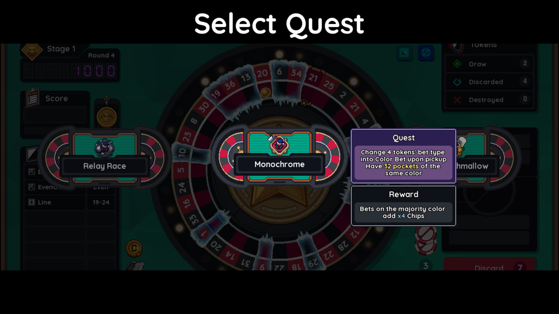 Bingle Bingle is a "Roulette Building" game where you can build your own roulette, changing numbers and colors to fit your strategy. You will start with a Normal Roulette and just a simple ball and bet. But as you spin the ball and earn scores to clear rounds, you will have the opportunity to upgrade your roulette, ball, and bets while crafting your own strategy. The decisions you make after each round to enhance your deck can lead to adrenaline-pumping synergy, where you can earn thousands or even millions of points, or you might fail and have to start all over again. Are you smart enough to create a strategy that will guide you to victory, and more importantly, are you lucky enough to beat the casino?