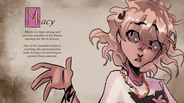 • Choice-based branching with 4 unique endings... and a bonus Free Roam route where you explore the slum's depths...