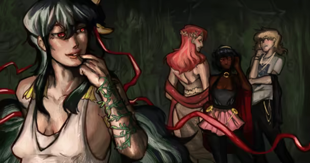 Seraphim Slum is a sapphic liminal visual novel revolving around fallen angels, the horror of intimate relationships, self-perceived sins, predestination, and love conquering self.