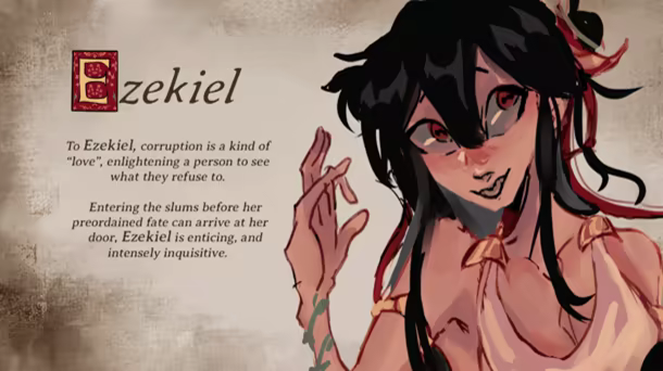 Ezekiel has moved into the slums. She finds herself enamored with its inhabitants: three girls, in particular.