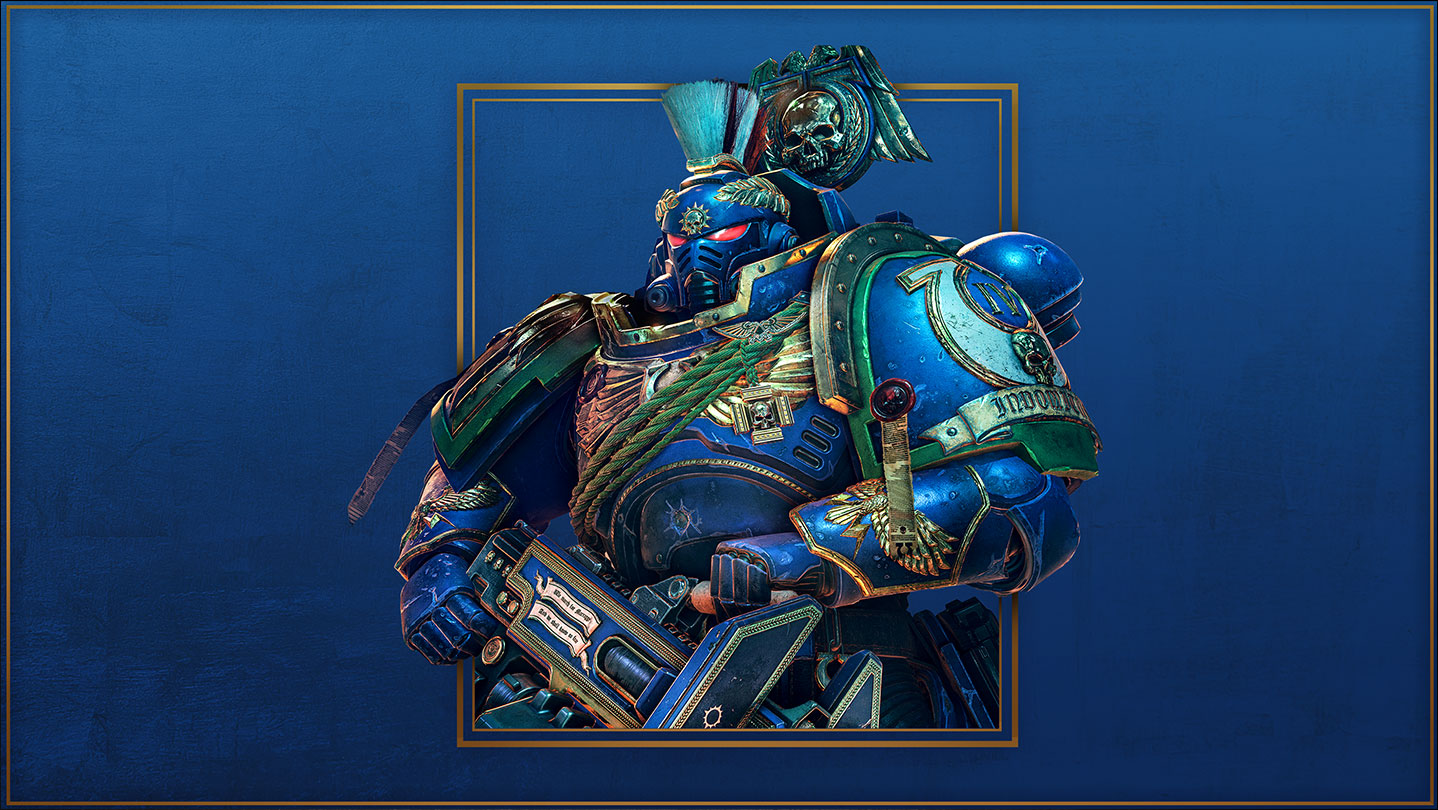 Honour your Chapter's proud martial heritage with the Ultramarines Champion Pack, granting you a unique full-body Power Armour skin and a Heavy Bolter skin featuring the colours and iconography of the warriors of Ultramar.