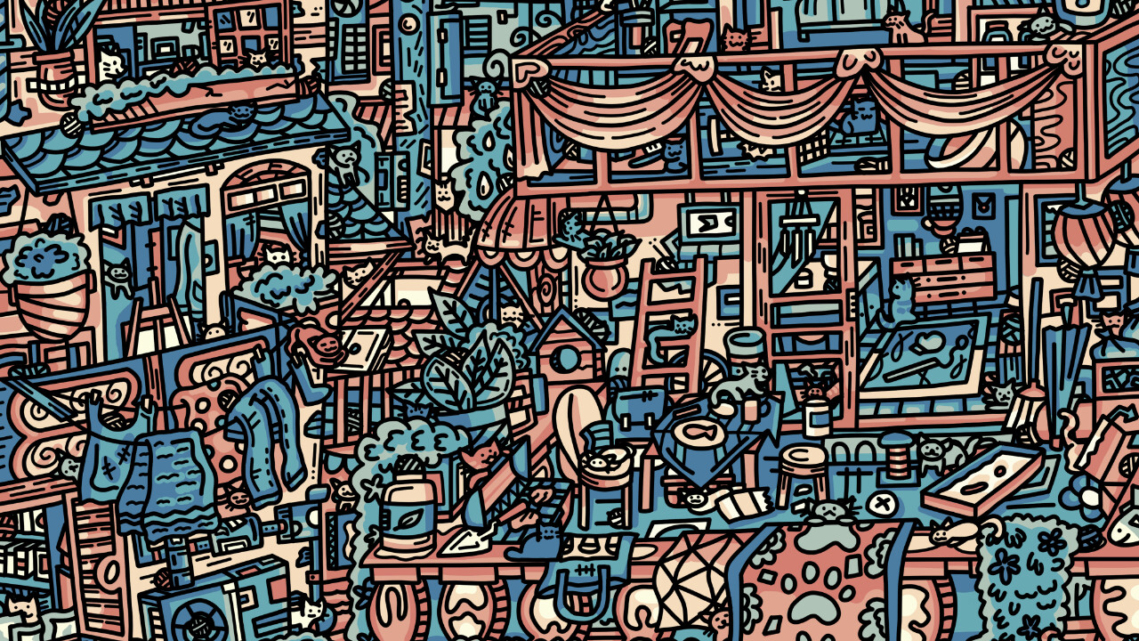 The brief was simple. I commissioned artists to create a fantasy world, and hide as many cats and wool as they can inside it. Now it’s your job to find them all! With 50 art pieces to choose from, you will have a lot of searching to do.
