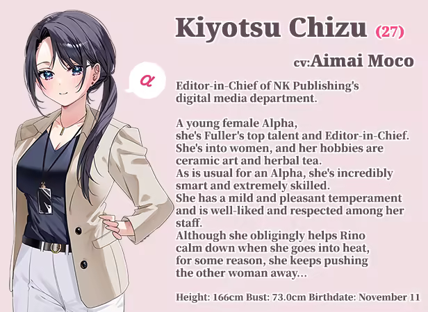 Chizu respects the fact that Rino doesn't want to quit her job just because of her natural urges as an Omega and makes a decision to help her.