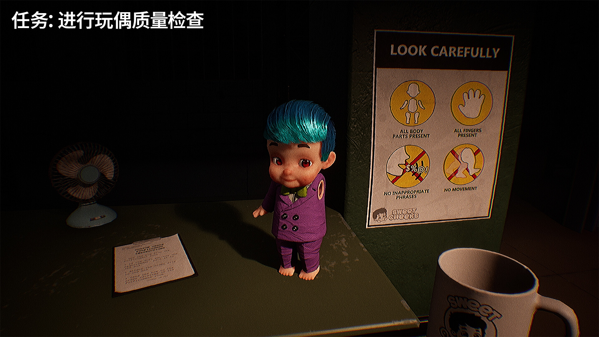 仔细检查每个玩偶,寻找奇怪的缺陷和诡异的行为。从微妙的瑕疵到令人不安的动作,每一个异常都不能放过,确保只有“安全”的玩偶通过检查。