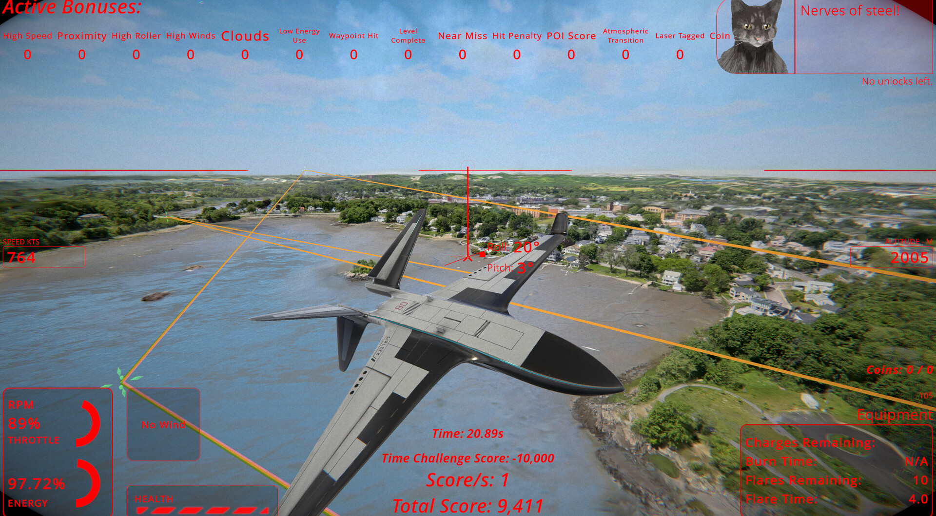 Master the art of extreme flight in Exosky, a surreal, physics-based sim where risky stunts means higher scores and better data. Push the limits of airframe and pilot as you train an AI cat's revolutionary autopilot system. Try the demo now!