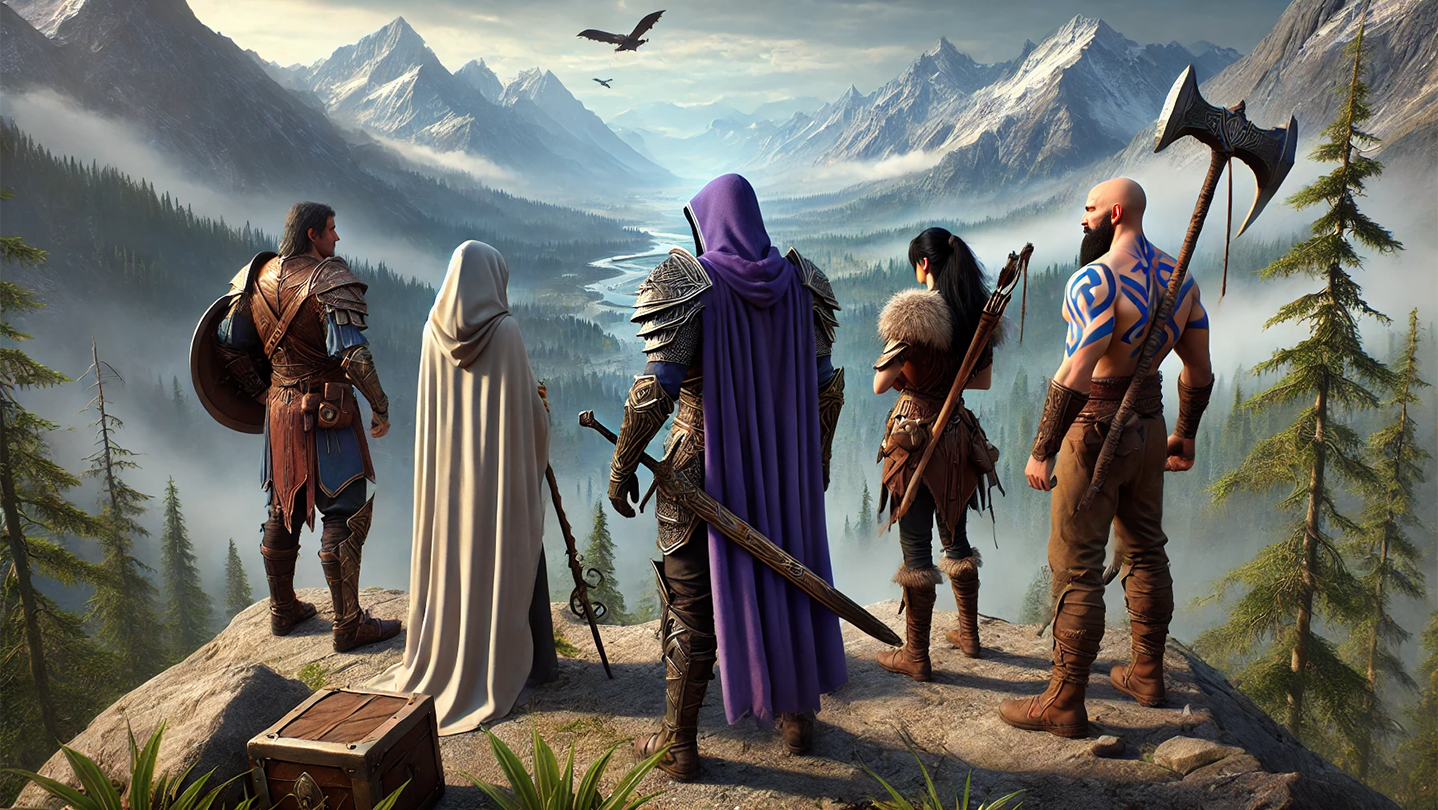 AI generated loading screens and pages for stories. Artworks images to presents character classes and marketing images.