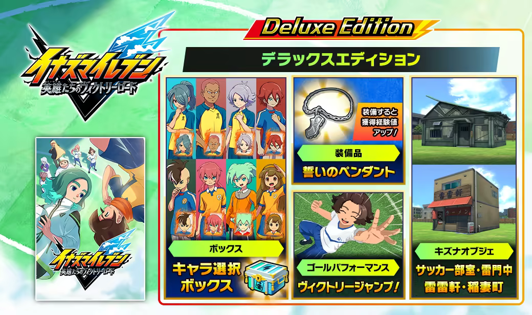 『イナズマイレブン 英雄たちのヴィクトリーロード デラックスエディション』はゲーム本編に以下コンテンツが付属したお得なセット!