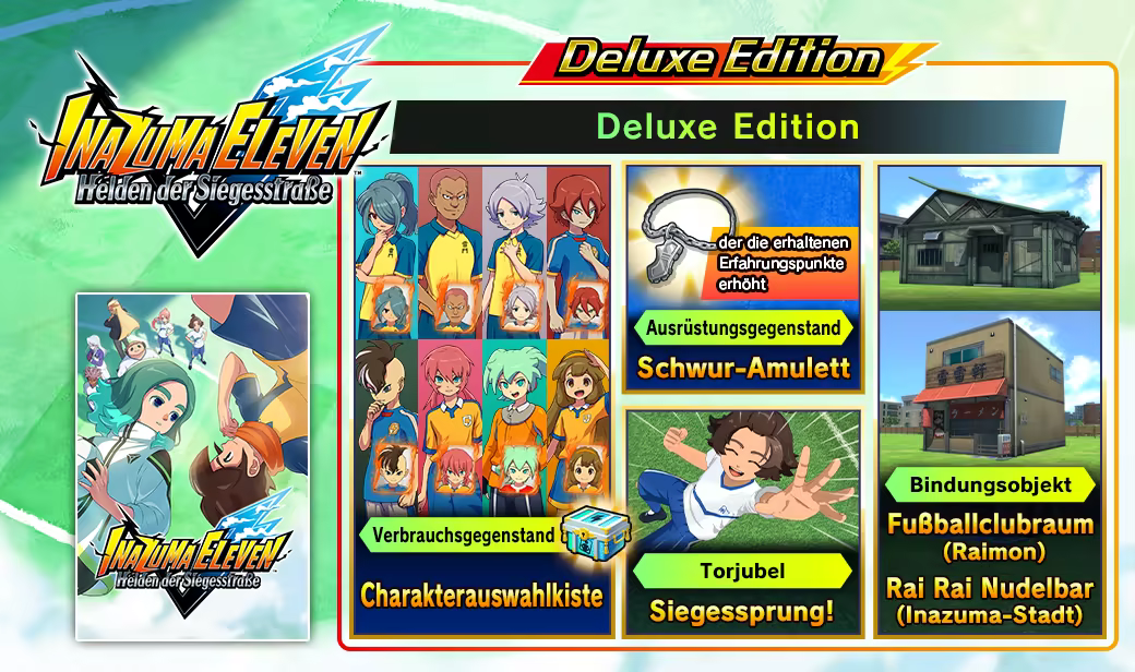 Die Inazuma Eleven: Victory Road Deluxe Edition kombiniert das Hauptspiel mit den folgenden Zusatzinhalten!