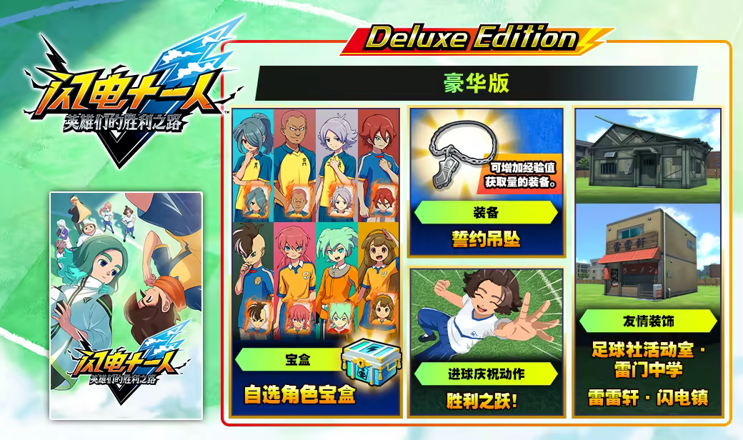 《闪电十一人 英雄们的胜利之路》豪华版不仅包含完整游戏,还附带多种豪华追加内容,超值体验等你来享!