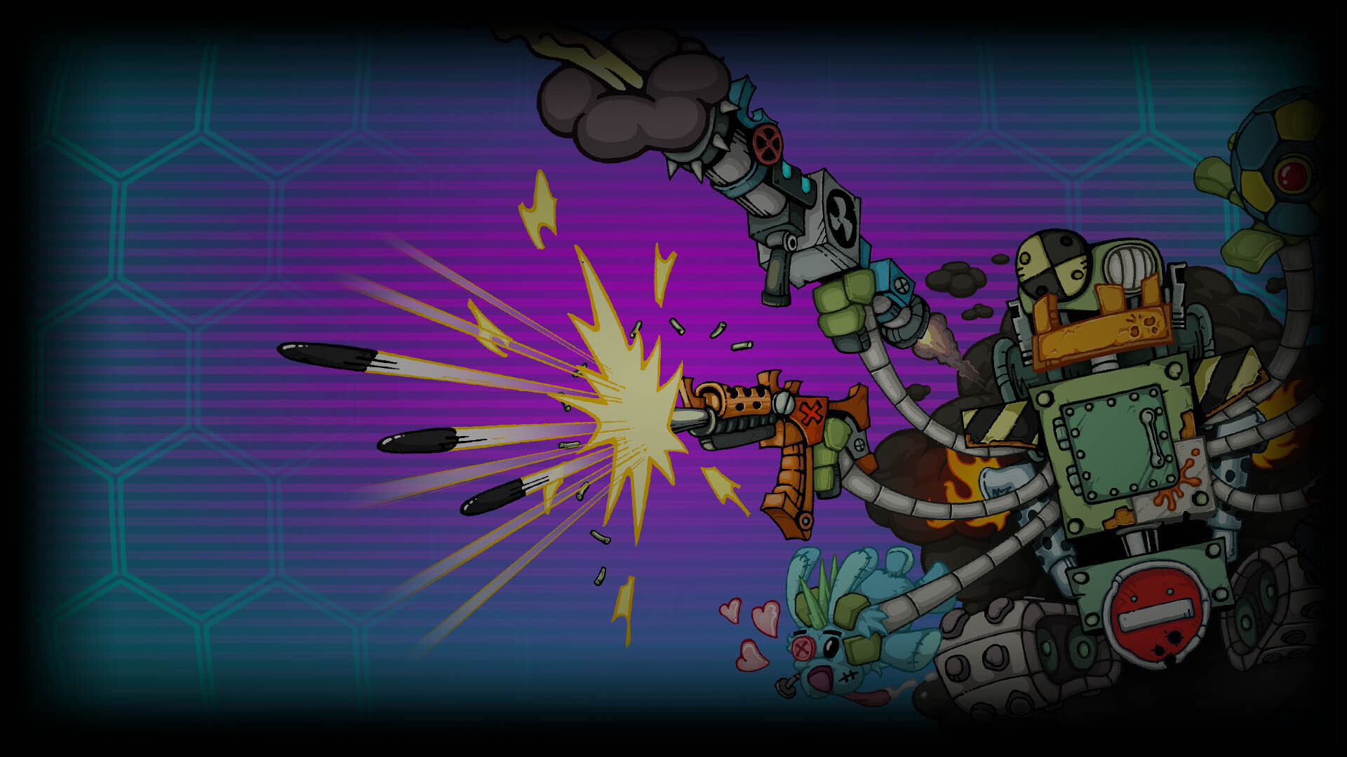 Splatter slimes, massacre mutants, and assemble your perfect Gunbot! Survive hordes of enemies in this top-down shooter roguelite by customizing your weapons on the unique upgrade grid, and pick from a wide variety of build-defining modules and wacky base bots for a new experience every run.