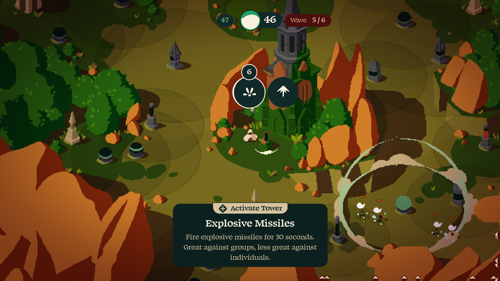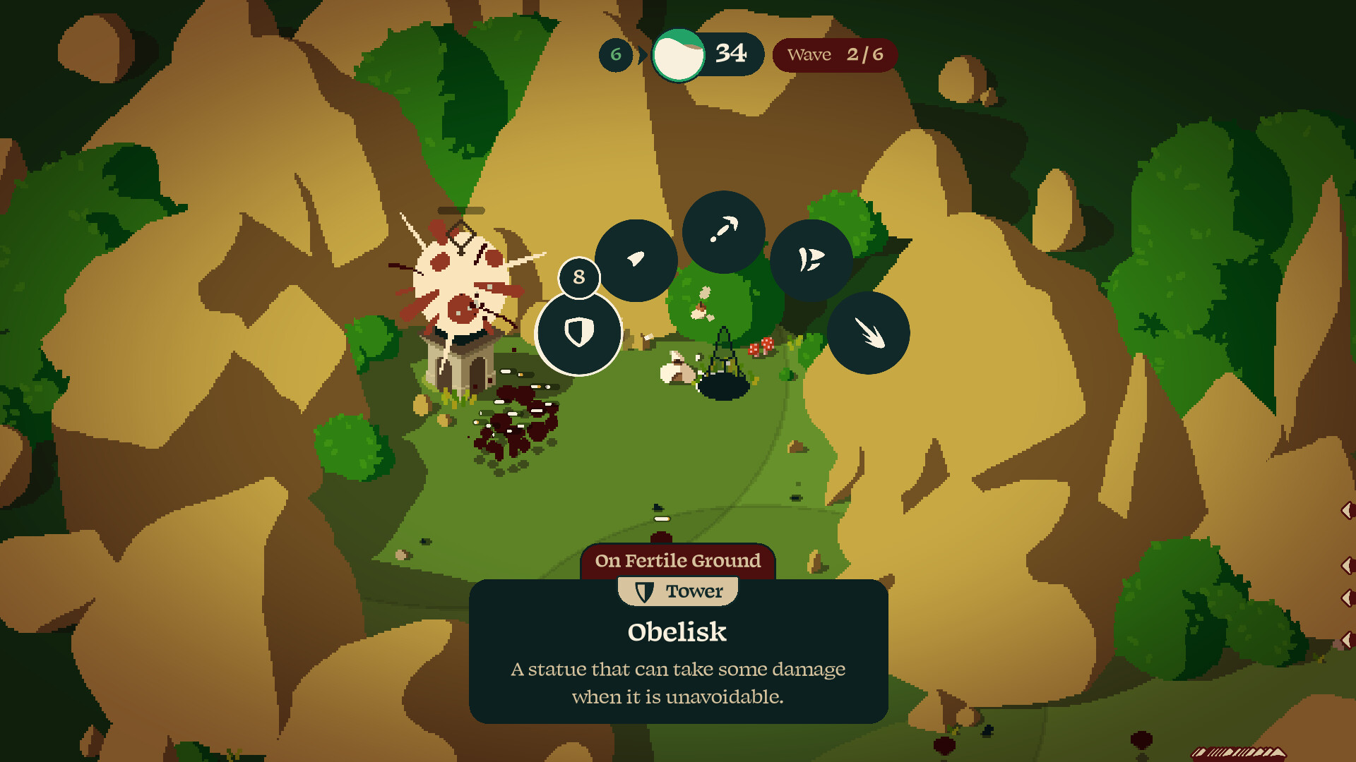 Don’t have enough juice to build your tower? Schedule it. Built the wrong tower? Get a full refund. Lost a tower? It’ll respawn for free after the wave. Lost your Extractor? Only redo the last wave. Having a hard time? Pick flowers for a bit of extra juice.