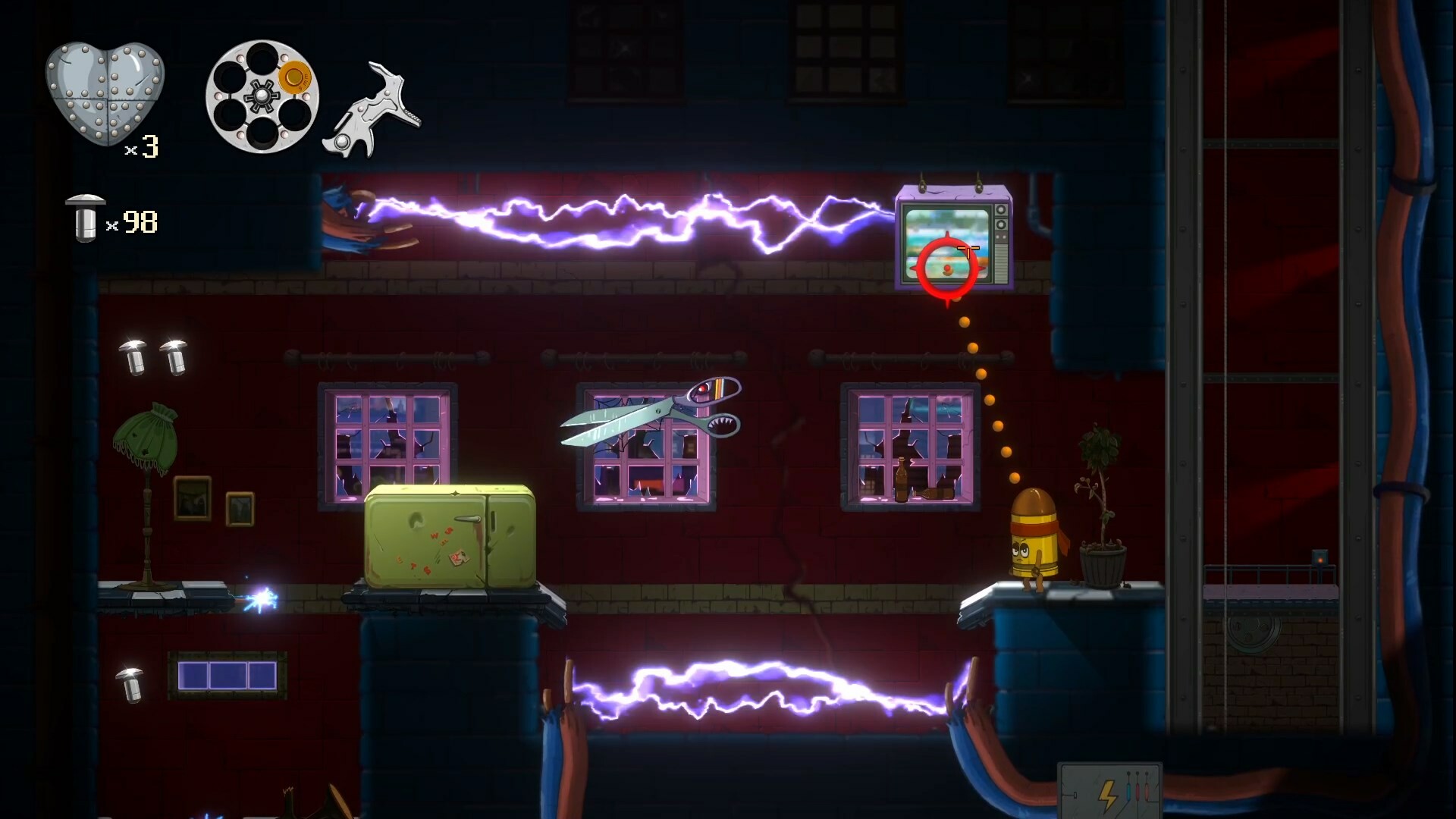 Death will not do you apart unless your steel heart stops pumping that powder! Gather rivets, bring them to the machines scattered around the City and fix your broken heart. But remember: your path of Justice ends when your heart stops beating....meaning that if you lose all your hearts - you'll have to start over!