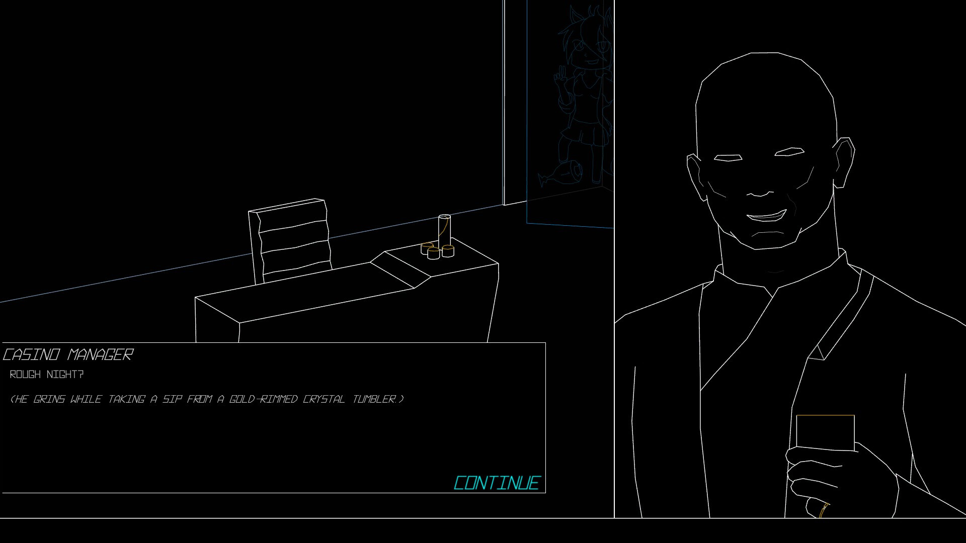 The abyss awaits. Descend into a minimalist visual novel about a girl in the future, and guide her through branching conversations, microgames, and explorable locations. Make friends with criminals, drink too much at dinner, or relax in a spa. Whatever happens, it was your choice.