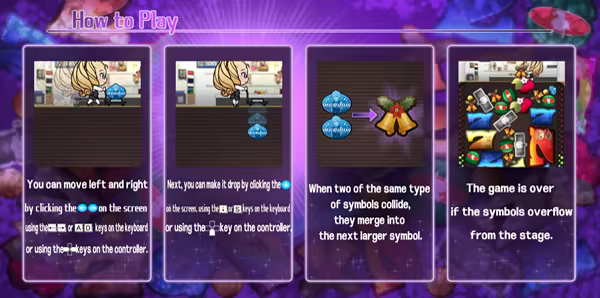 A merge puzzle inspired by slot machine icons! Start with replays, then bells, watermelons... and grow them in order, aiming to hit the rainbow seven to enter bonus time! With a continuation rate over 50%, let's earn massive scores during bonus time!