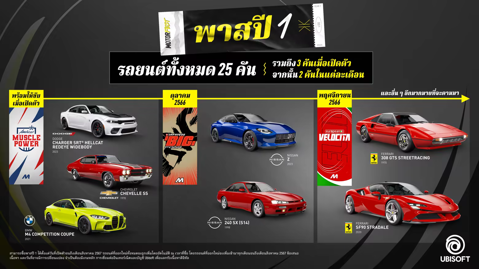 ใหม่: ปลดล็อกยานพาหนะเพิ่มเติม 1 คัน (รถต้นแบบ Cadillac Ciel) จากพาสปี 3 (ต้องซื้อแยกต่างหาก) หากคุณซื้อพาสปี 1 หรือ พาสปี 2