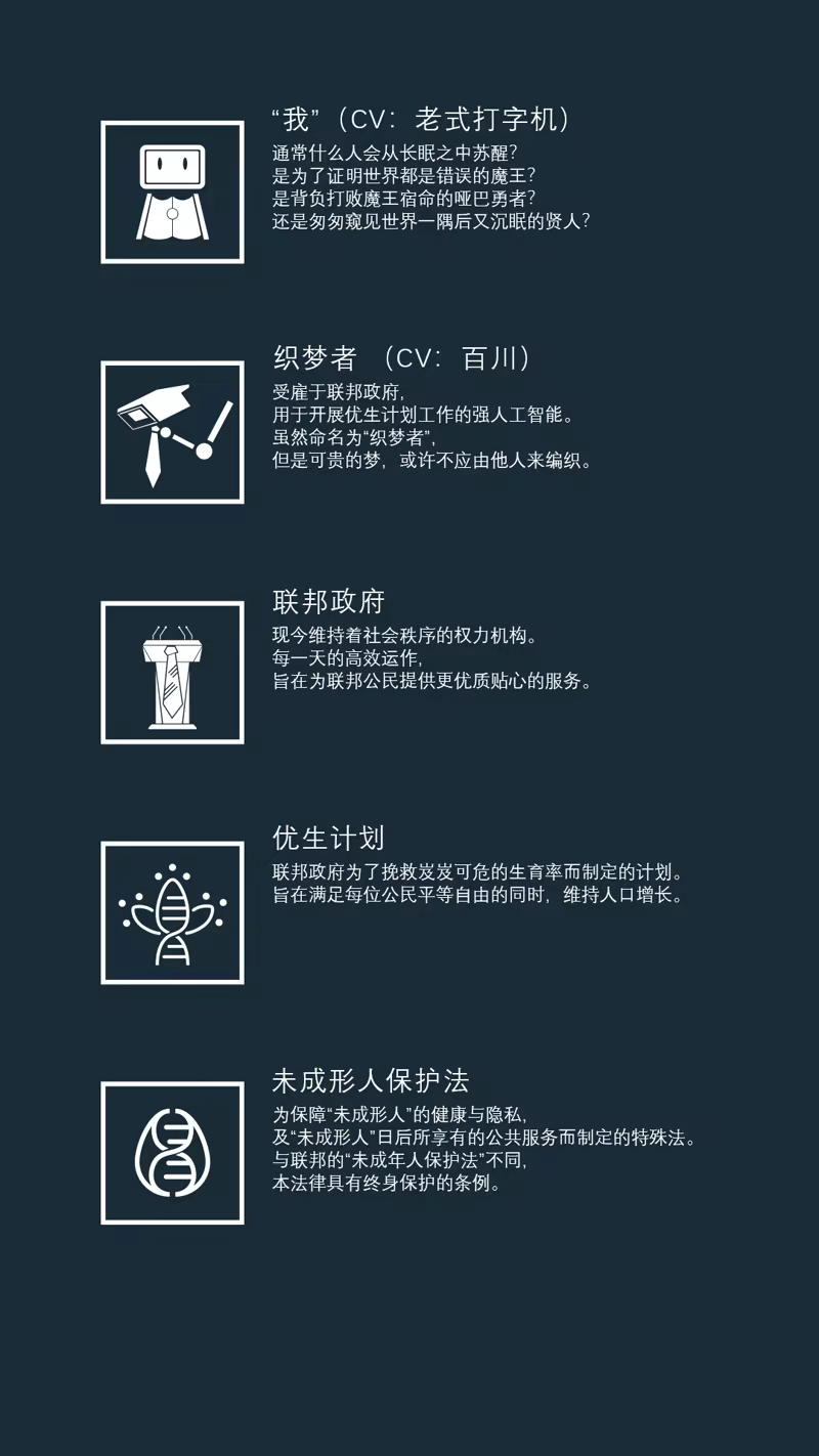 一个沉眠的“意识”被唤醒,一个自称是“纳米机械”的管理者带来了一道“选择题”。即将发生的究竟是一个故事…亦或是某个故事的开端?而这一道“选择题”…又能折射出这个世界的多少样貌呢?