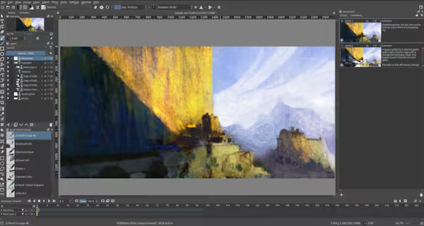 Krita also comes with a host of useful tools for traditional frame-by-frame 2D animation and storyboarding with a dedicated timeline and onion skinning.
