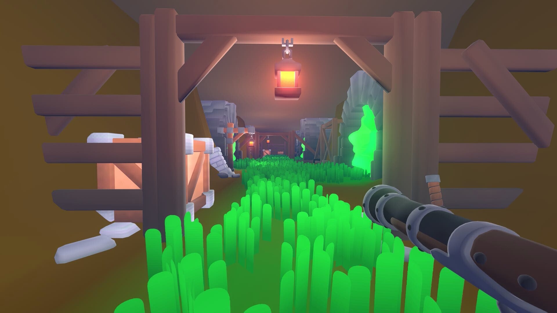 • Use your rifle or hammer to eliminate the goblins.