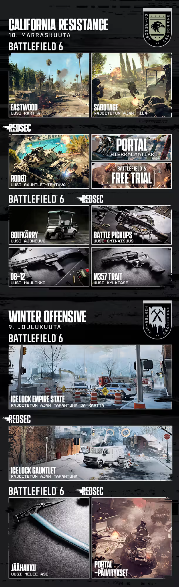 Nyt saavut REDSECiin – äärimmäiseen ilmaispelattavaan FPS-kohteeseen, joka pohjautuu Battlefieldin ikoniseen ytimeen. Mukana Battle Royale, Gauntlet ja Portalin mahti.